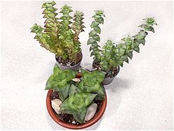 Crassula conjuncta, C.perforata, C.sladenii, C.perforata X alba |