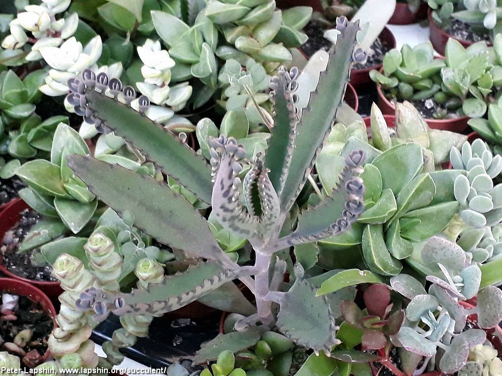Parentage: Kalanchoe daigremontiana x K. delagoensis (=tubiflora)
