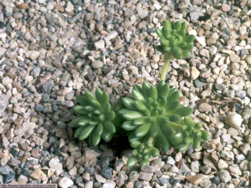 Миниатюрное растение, розетки 2-3 см в диаметре, растет куртиной, боковые побеги отрастают между листьями. Листья 1-1,5 см длиной, около 1 мм толщиной, плоско-цилиндрические, желтовато-зеленые, опушенные, липкие на ощупь. Цветки крупные, светло-розовые, многочисленные.