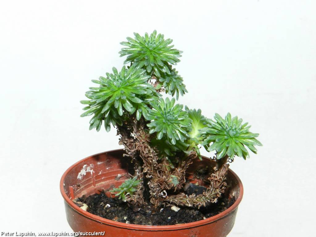 Почвопокровное, миниатюрное растение. Листья мелкие, до 1 см длиной, игловидные, тонкие, группируются преимущественно на концах побегов.