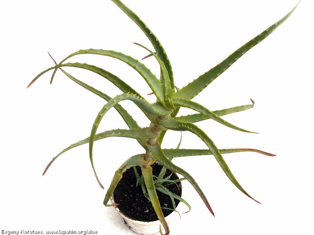 Родина Южная Африка, растет вдоль побережья, на скалистых склонах гор и в долинах рек на высоте до 1800 м над ур. м. В природе кустарники 1-3 м высотой, широко разветвленные, образующие заросли. Листья в основном собраны в розетки на концах побегов, ремневидные, 20-40 см длиной, плотные, толстые, 1-2 см толщиной, суживающиеся кверху, серовато-сизые, матовые, без полос и пятен, сверху плоские, к основанию слабо желобчатые, по краям шиповато-зубчатые, 0.3-0.5 см длиной, вперед загнутые. Цветонос 80 см высотой. Цветки около 4 см длиной, ярко-красные. Цветет в январе-апреле.