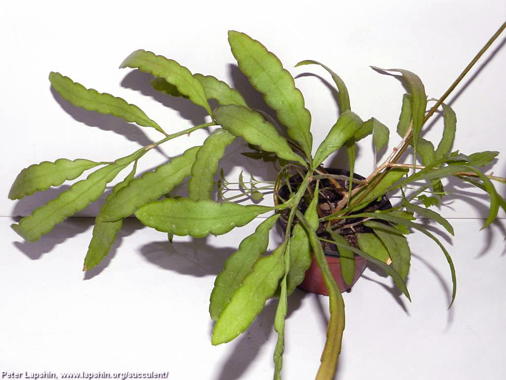 Текущее название Kimnachia ramulosa. Встречается в Центральной Америке и в северной половине Южной Америки. Форма роста кустовая или свешивающаяся. Имеются побеги двух типов: первого порядка тонкие цилиндрические, второго порядка плоские, сегментированные. Сегменты 20-40 см длиной, 3-4 см шириной, желто-зеленые, у красноокрашенной формы могут розоветь до насыщенного красно-розового цвета. Цветки беловатые, мелкие, 1,5-2 см в диаметре, сидячие. После цветения долго держит белые ягоды, украшающие растение.
