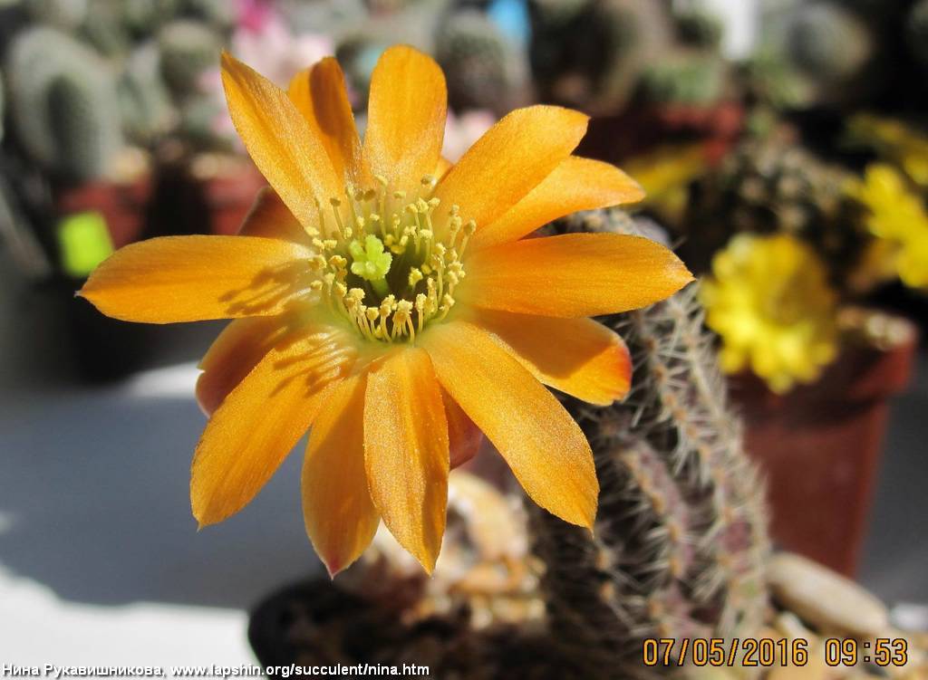 Колючки обычно многочисленные и тонкие. Цветки в желто-оранжевой и розово-красной гамме, воронковидные, многочисленные, около 4 см в диаметре.