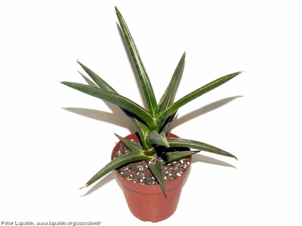 Родина - восточная Африка, Кения. Развивает вертикальный стебель. Листья в нескольких вертикальных рядах равномерно покрывают стебель. Листья цилиндрические, 50-90 см длиной, темно-зеленые, без полос, сочные, жесткие, прямые, равномерно сужающиеся по длине, с заостренными концами.