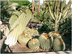 Ferocactus wislizenii (left), Echinocactus sp. (right) - Слева Ферокактус вислизени, Эхинокактус справа