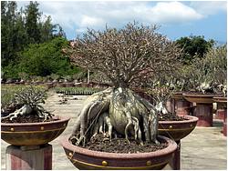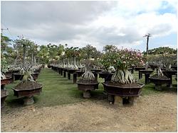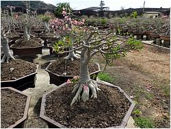 Адениумы - это травянистые кустовидные растения из семейства Кутровых, для которых характерно формирование так называемого каудекса - непропорционально увеличенного основания ствола и нескольких главных корней, которые служат для накопления воды. Стволы и корни адениумов имеют консистенцию редьки, это именно травянистые растения, которые только имитируют древесную форму. Можно усиливать эффект различными способами формирования основания растения: обрезкой и специальной посадкой. Адениумы - очень быстрорастущие растения, особенно в теплом и влажном климате Таиланда, с ними легко работать и получать интересные экземпляры, которые выглядят очень эффектно.