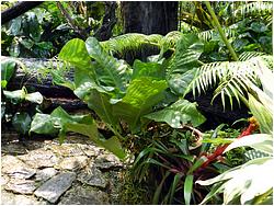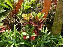 Непосредственно у входа располагается небольшой садик с весьма занимательными скульптурными формами, набранными из нанизанных на каркас глиняных горшков. Из них сделаны довольно массивные арки, скульптуры слонов. Из растительности этот садик посвящен представителям семейства Бромелиевых и там же аллея с орхидеями. Для туристов предлагалось пообниматься с живым тигром и пофографироваться с крупными попугаями. Садик производит очень яркое и симпатичное впечатление.