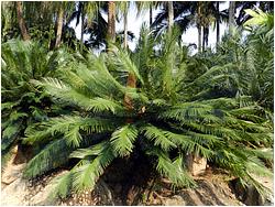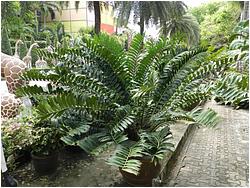 Саговниковые относятся к Голосемянным (также, как и хвойные растения) и по внешнему виду представляют из себя нечто среднее между папоротниками и пальмами. Для них характерна розеточная форма, жесткие ксероморфные листья, обычно отсутствие боковых побегов. В почтенном возрасте они формируют небольшой ствол, усиливая сходство с пальмами в противоположность папоротникам. При выращивании это теневыносливые и относительно медленнорастущие, но очень устойчивые растения для внутреннего озеленения. На этой странице все пальмы и папоротники в центре кадра - это предстватели семейства Саговниковых. На первом фото - почка с очередным годовым приростом листьев.