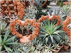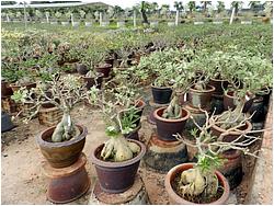 Собственно, отдельные суккулентные растения... На этой странице адениумы, агавы, на следующей алоэ, эуфорбии и некоторые другие растения. Из всего многообразия тропической флоры и разного рода видовых фотографий по ботаническому саду Нонг Нуч, в настоящем разделе оказалось всего полторы сотни фотографий менее 70 видов суккулентных растений. Анонсируемый в проспектах по парку "Сад кактусов" совершенно не производил никакого впечатления: накрытая тентом поляна эхиногрузонов, растущих между крупных валунов, и рядом поляна глиняных бочкообразных изделий, долженствующих напоминать кактусы. Других суккулентных растений в этой части парка были единицы. Зато бабоаб, фото которого в разделе с тропической ботвой, рос именно здесь. Конечно, заслуживают упоминания совершенно уникальные прививки мамиллярий элонгат на цереусы перувианусы, причем уникальные только в части самого подхода: мало кому в здравом уме придет в голову это делать. Остальные суккуленты на этой странице сняты в самых разных других частях большого тропического парка, а большинство из них - на питомнике.