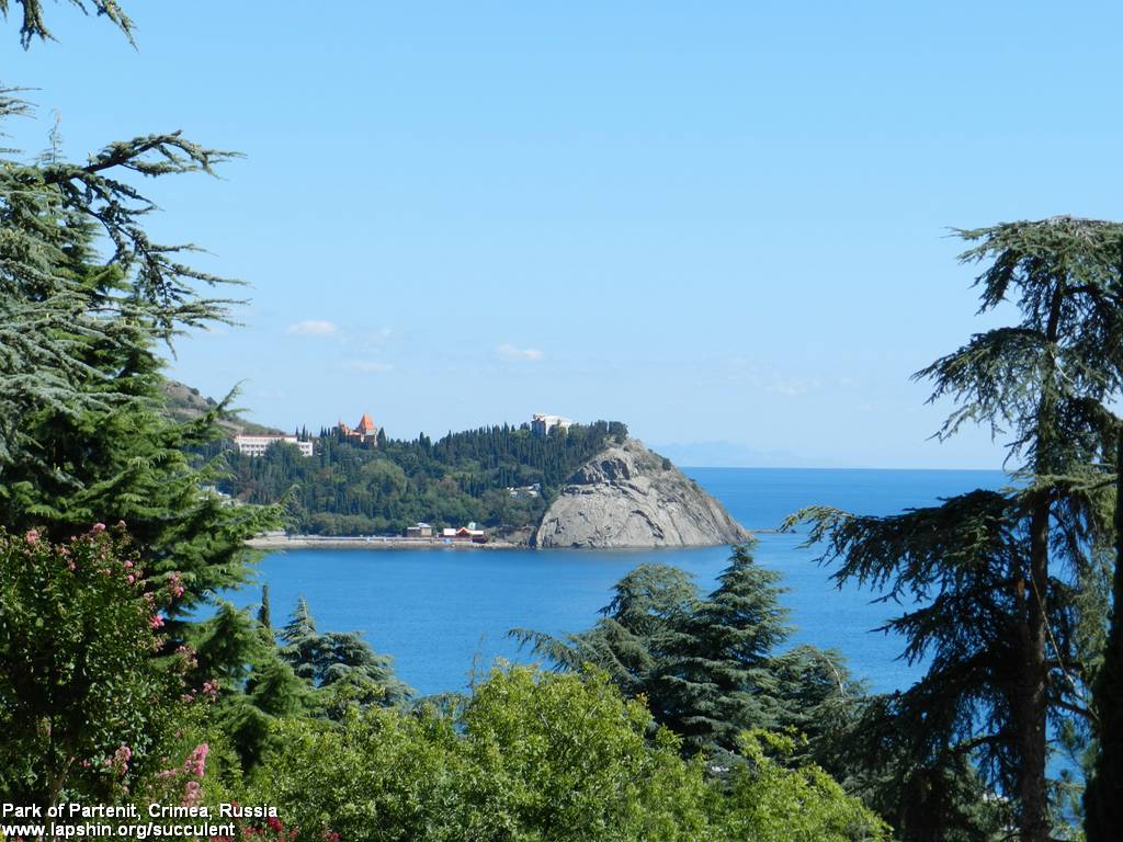 Предлагаем вриманию посетилелей сайта фотографии, сделанные в парке Дома отдыха "Айвазовское", расположенном на Южном берегу Крыма, в Партенитской долине, которая находится около Гурзуфа, между Алуштой и Ялтой (ссылка на карту) у восточного склона горы Аю-Даг (Медведь-гора) с другой стороны от Артека. Первоначально территория на берегу Кучук-Ламбадской бухты относилась к имению княгини Гагариной "Чукурлар". В 1948 году поселок был переименован в честь художника И.К.Айвазовского. Дом отдыха открыт в 1964 году как здравница Президиума Верховного совета СССР.