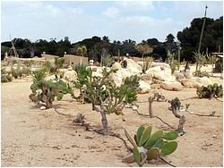 Местоположение на гугл-карте. "Сад кактусов" был заложен 20 лет назад и находится на попечении Аарона Нави, который любезно провел для нас экскурсию по своим владениям (1 сентября 2011 года). Сад представляет собой склон холма площадью примерно 300х200 метров, где прямо в грунт высажены кактусы и другие суккуленты. К каждому растению подведен шланг для капельного полива: раз в неделю по 2 литра на каждое растение. Соотношение кактусов и других суккулентов примерно поровну. Большинство растений находятся на прямом солнце и их внешний вид прямо пропорционален климатическим условиям пустыни Негев, где выпадает в среднем 90 мм осадков в год и пасмурные дни бывают очень редко.