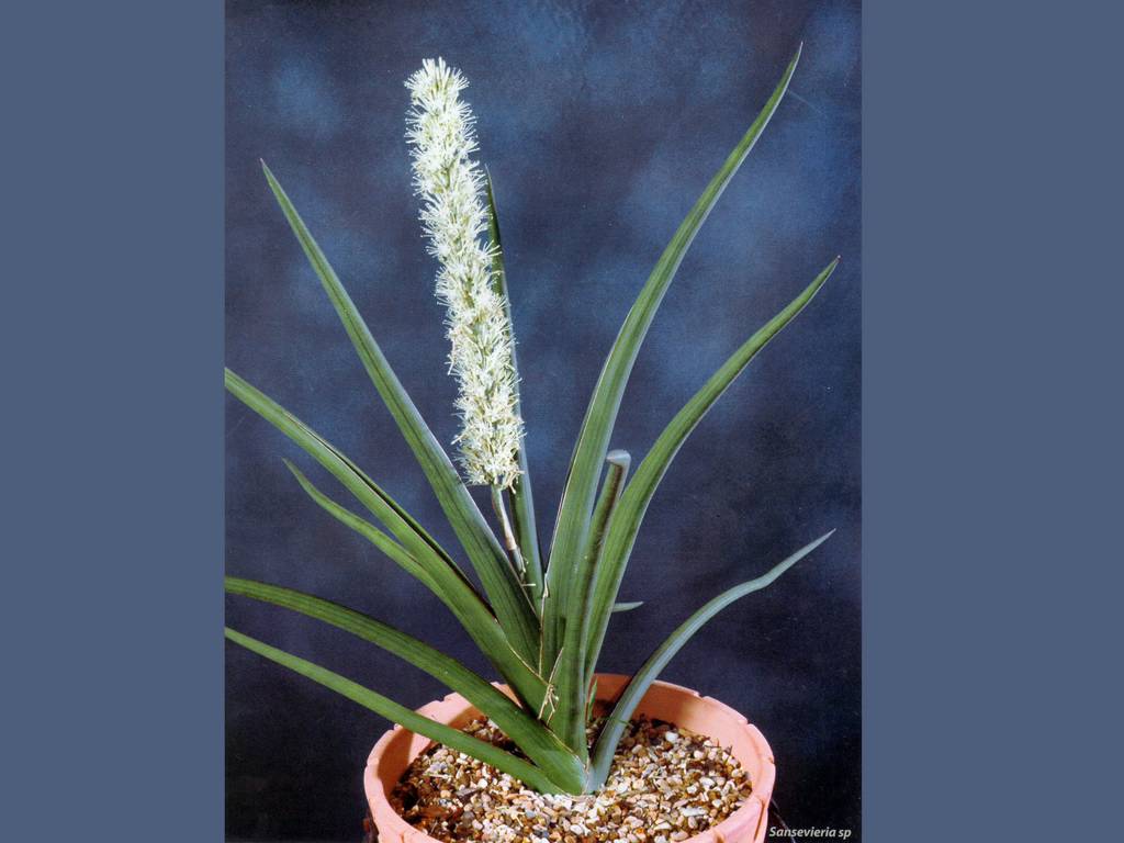 Иногда некоторые виды отходят от исходной формы. Для идентификации такого вида, нужно видеть цветки. Каждый вид имеет различные цветы. Цветки сансевьер напоминают миниатюрные трубы. Одни виды производят сотни цветков, другие десятки или меньше. Меняется длина цветоноса. Есть несколько видов с цветоносами менее 10 см. В то время как другие достигают 60-100 см. Конечно, повышенная длина имеет больший интерес. Хотя форма похожа, но если рассмотреть более глубоко, есть 3 основных группы, различающиеся соотношением глубины воронки и длины ножки. Цветок, как правило, белого цвета, но есть некоторые, окрашенные в розовый цвет.