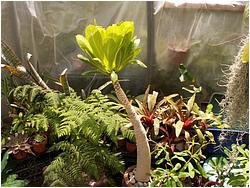 Харел Серуси на момент нашего визита был руководителем "Израильского общества любителей орхидей". Харел увлекается тилляндсиями и орхидеями, у него в коллекции много других бромелиевых и интересных суккулентных растений. Выращивание эпифитных орхидных и бромелиевых, требующих не таких высоких температур, какие есть просто на улице в жарком и сухом климате Израиля, не менее нетривиальная задача, чем выращивание солнце- и теплолюбивых кактусов в Москве и других областях, близких к Полярному кругу. Для эпифитов у Харела на участке стоит охлаждаемая "анти-теплица" - герметично закрытое помещение с мощными кондиционерами внутри и "холодовой завесой" на входе, чтобы поддерживать температуру около +18 +20 градусов, а вовсе не столько, сколько бывает на улице само по себе. Мы были в гостях у него зимой, 5 декабря, и даже в тот день на улице было под 30, а в этой теплице было существенно прохладнее и гораздо более влажно, чем снаружи. На фотографиях на этой странице Вы можете видеть некоторые бромелиевые и суккуленты из коллекции, которые росли вокруг дома.